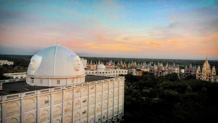 từ xa, toàn thể khuôn viên trường trông giống như một dãy cung điện